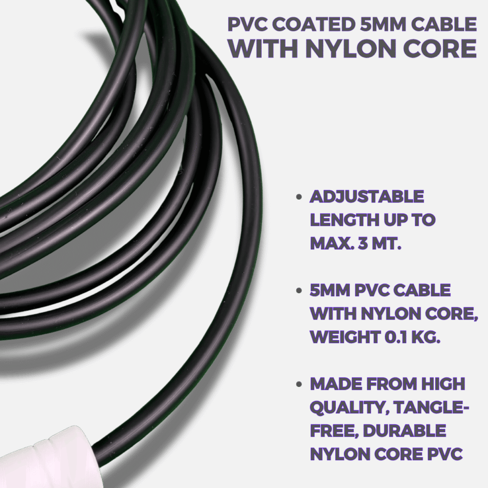 - Ultra-light PVC cable for lightning-fast spins